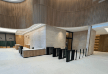 The focal point for the project is the stunning feature staircase that projects up through the atrium of the building. We supplied and installed the oak-clad staircase, with intricate detailing of CNC machined grooves and black metal inserts. As you can see, the final effect of the design is striking and one we are incredibly proud of. Additionally, the underside of the stairs, as well as link bridges between levels, were also clad in the same product ensuring a cohesive aesthetic throughout.